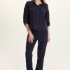 Textured double gauze, a classic lapel style with snap-up details and a central pleat are featured on this tabbed short-sleeve blouse with welt pockets on either side near the hem.
