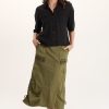 Tabbed three-quarter sleeves, zippered breast pockets, a classic collar, and a raw-edge hem round out this utility-inspired cargo shacket.