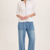 XCVI Women’s Shop Darwin Poplin/ribbed Tabbed 3/4-sleeve Jacket | Whitecap Pigment