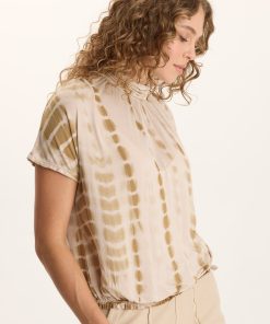 XCVI Women’s Tops Senneca Textured Satin Shirred Peplum Button-up Blouse | Ocean Storm Pigment