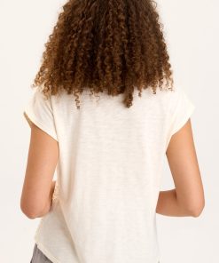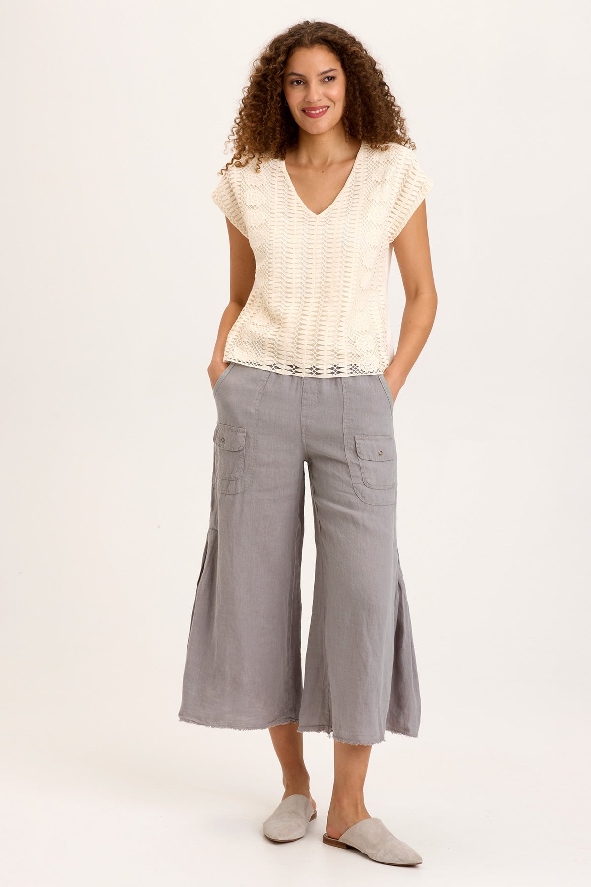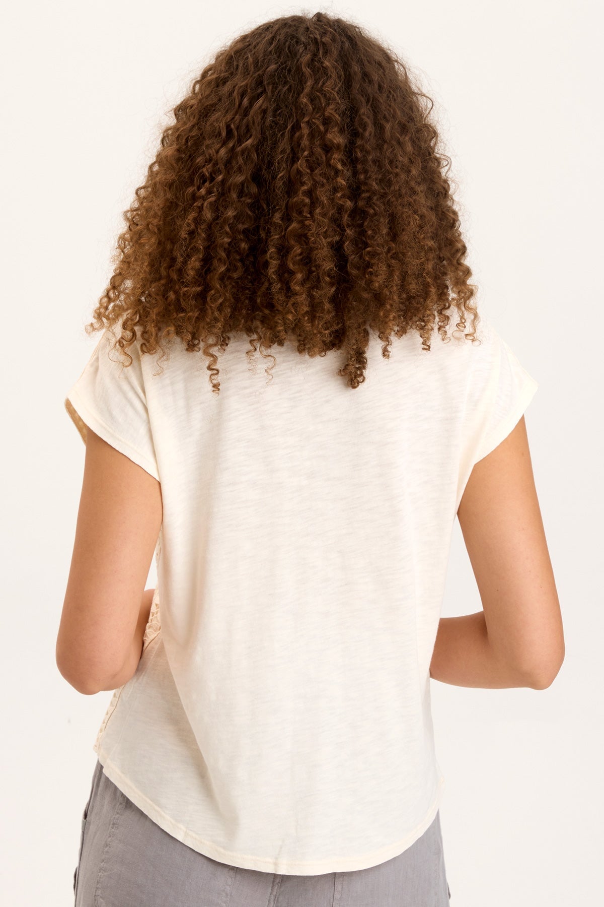 Floral-patterned crochet layers over a jersey lining in this v-neck, cap sleeve elevated tee. A slightly cropped front and boxy fit lends a casual feel to the delicate, artful Cotton Crochet.