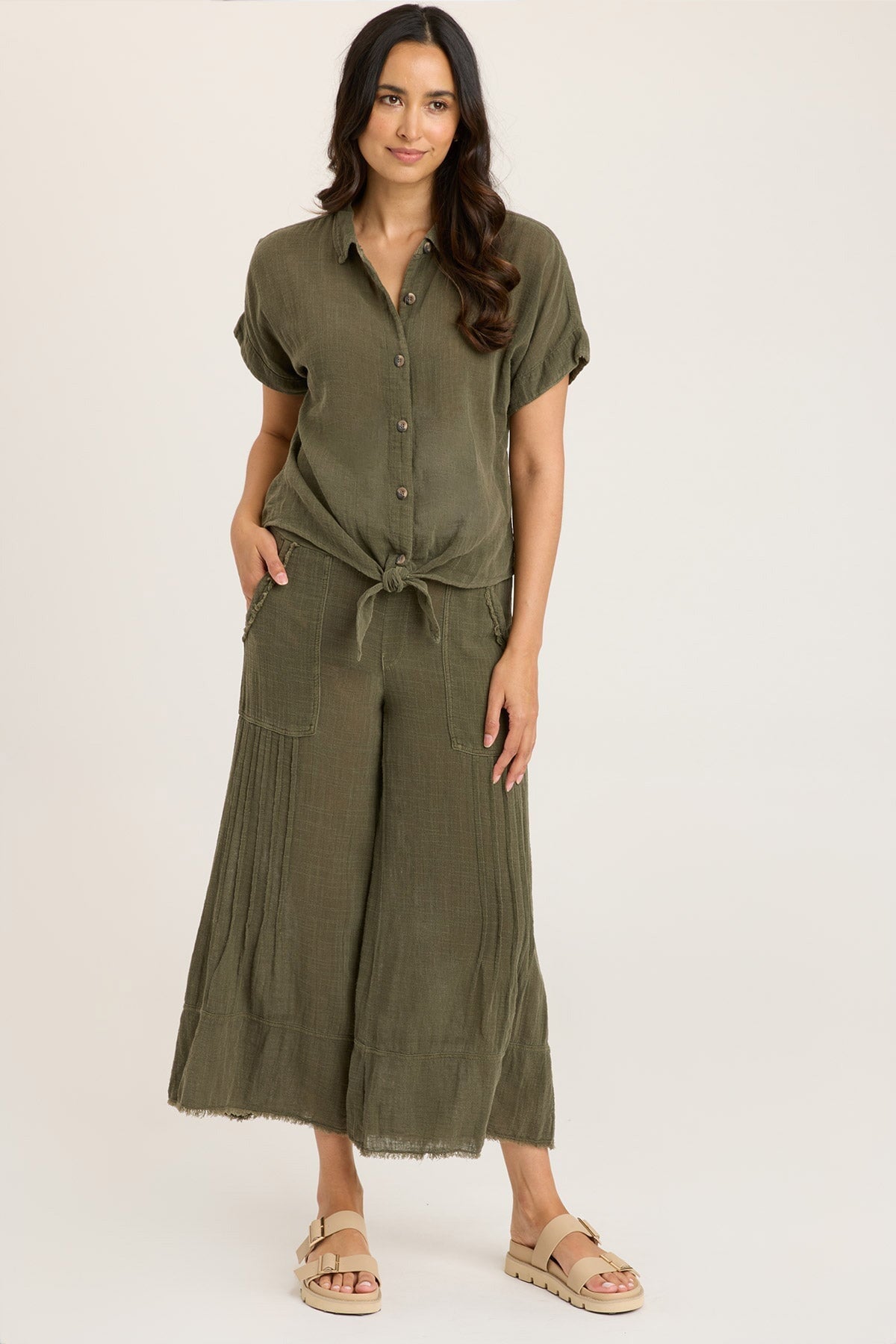 XCVI Women’s Gauze Teagan Tie Top | Kombu Pigment