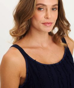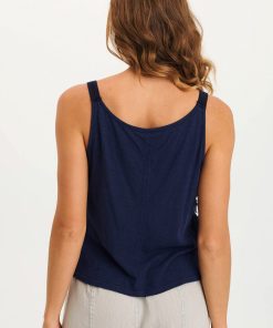 A fun new fabric graces the front of the Haddon Tank. A shredded stripe voile is center stage in this simple a-lined tank with twill tape straps and a contrast slub jersey back.