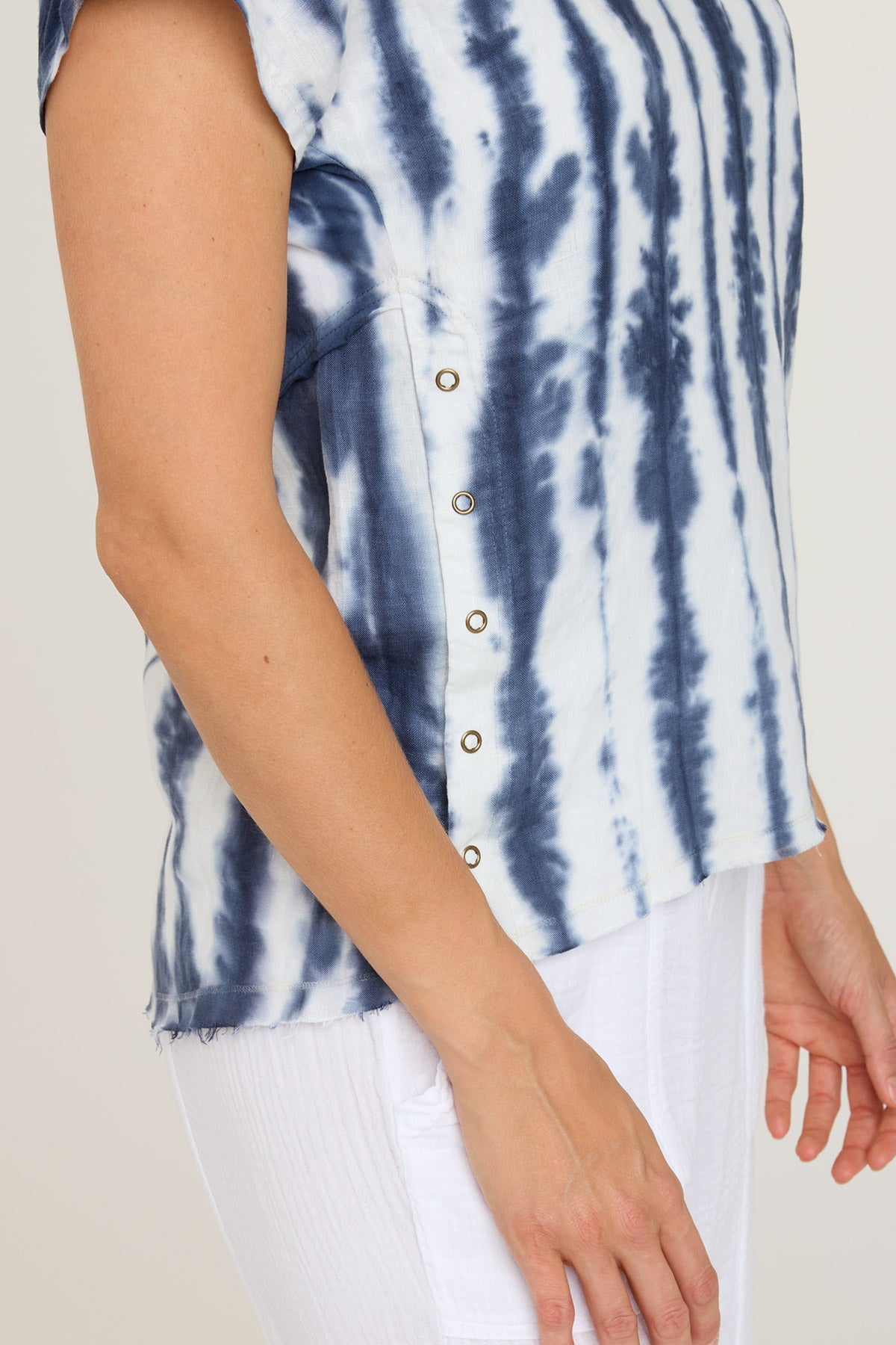 A simple shell top with a twist, or rather, a snap! Snap up side seams allow for you to rock Rian snapped up or free flowing. Contrasting jersey panel on the back yoke gives Rian extra easy breezy vibes.