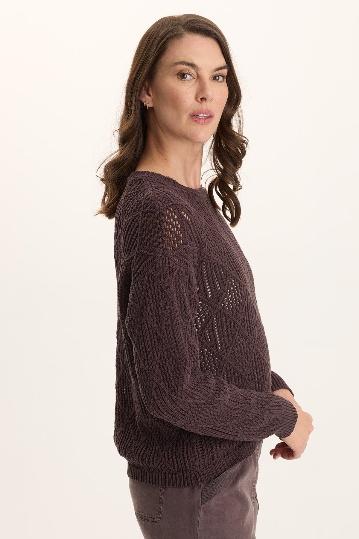 Diamond-knit Cali Cotton graces this long-sleeve, relaxed-fit style. She’s like a sweater with the endless possibilities of a lightweight layering piece.