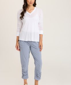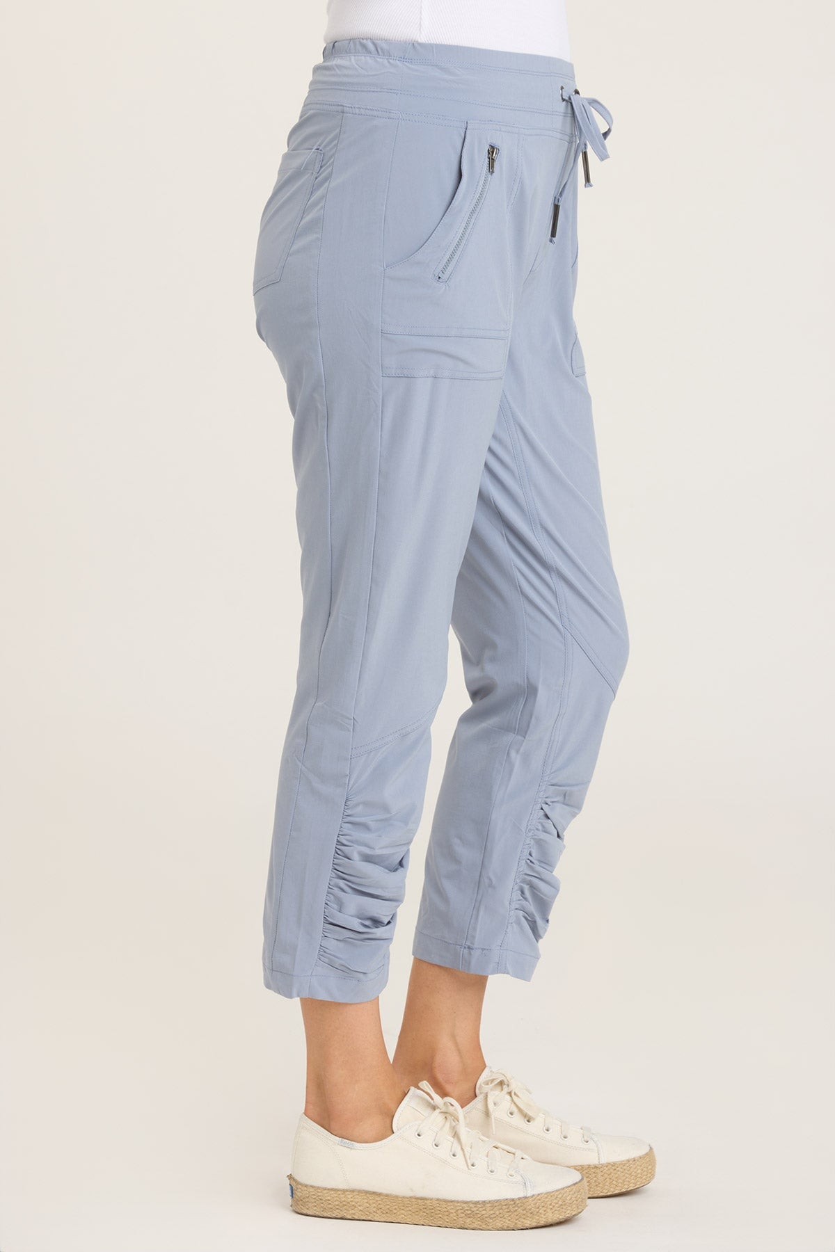 A Jetter spin off; this active legging features a drawstring waist, front pockets with zipper details, our classic ruched leg panels, back pockets and enough sass to keep you going all day!