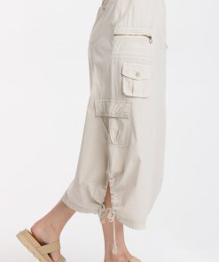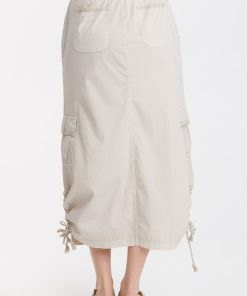 Cinchable cords adorn high sides on this maxi skirt with antique brass hardware stoppers. A pull-on elastic jersey waistband, twill tape ruched flap cargo pockets, and bell pull zippers adorn Armel for MAXI impact.