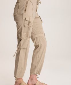 Cinched adjustable leg openings and voluminous tabbed pockets throughout add adventure to this tapered poplin crop.