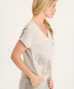Another guest designer artwork piece, this v-neck tee has hand drawn embroidery and a back contrasting panel.