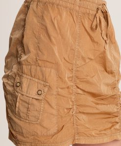 This nylon mini skirt features ruched paneling, a pull-on drawstring waist, and cargo pockets for a cheeky athletic number that’s cute as can be!