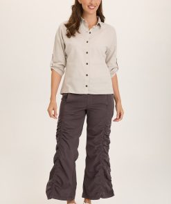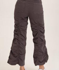 A pull-on stretch waistband and allover ruching adorn this flared split-hem gaucho style in lightweight Stretch Poplin.