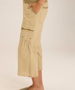 Pasqual Crop features raw edges on semi-wide leg opening. With a foldover waist and clean cargo pockets, this flowing crop gives structure and fun!