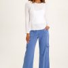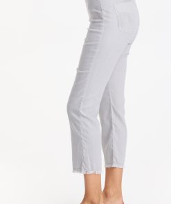 This stretch twill crop is quickly becoming one of our best-selling denim alternative pants. Features a clean straight leg silhouette, elastic pull-on waistband with faux fly, two jean-style back pockets, and raw edge hem.