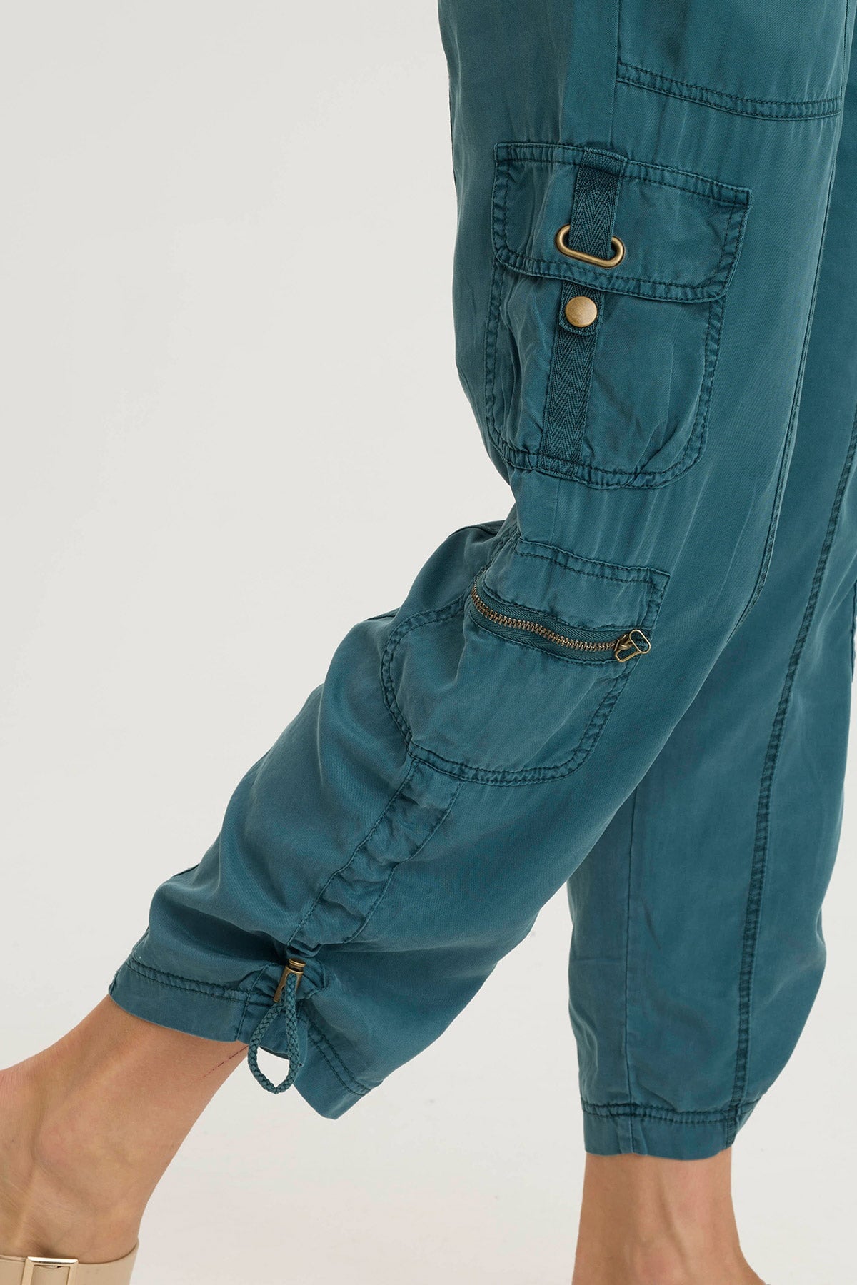 A corded side seam is featured on Selmy. Along with multiple cargo pockets, front and back pockets and a rib and drawstring waist, this crop is an easy first pick.