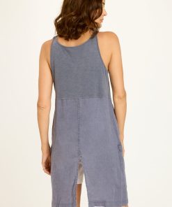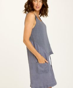 Unique as can be. In contrasting jersey and linen, Finton’s elongated side panels add some unexpected coverage and feature pockets for additional function. Adjustable antique brass hardware-buckled straps and rib at the front hem take things up a notch in this tunic-esque, novelty style.