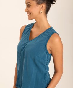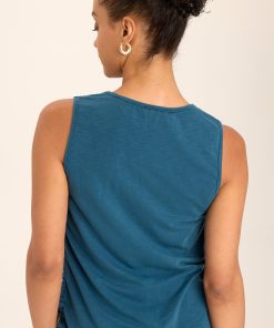 A pretty tank with unusual details. Ileana features a cinchable side seam with brass stopper and a contrast back panel.