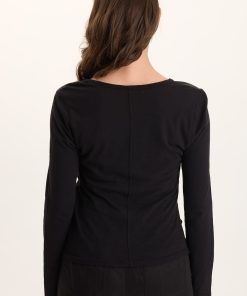 XCVI Women’s Tops Ketti Long Sleeve Twill/jersey Ruched V-neck | Black