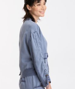 Cinchable corded sleeves with antique brass stoppers bring the adjustable novelty to this Soft Twill varsity jacket. Raw edges at the collar and hem, pleated cargo pockets, a ring-pull zipper, functional back placket, twill tape detailing, and contrasting ribbed collar, side hem, and under-sleeve finish off this unique piece of lightweight outerwear.