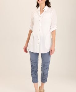 A classic XCVI body brought back to delight with a long tunic style silhouette and a snap-up front closure. Featuring rollable tabbed sleeves, two welt breast pockets and a yoked back pleated panel.