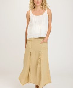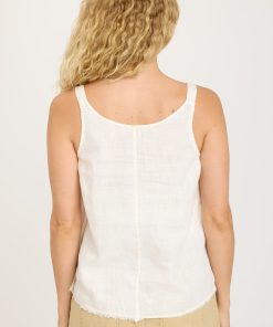 Pintucks along the front and a distressed hemline with small side slits bring detail to this billowy, feminine style.